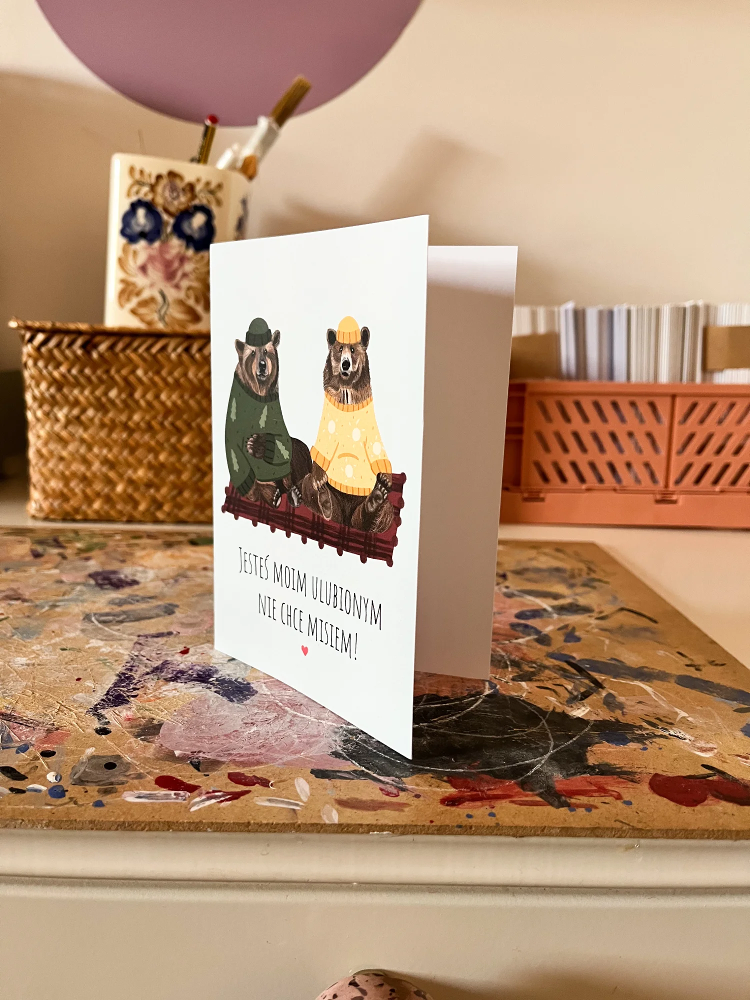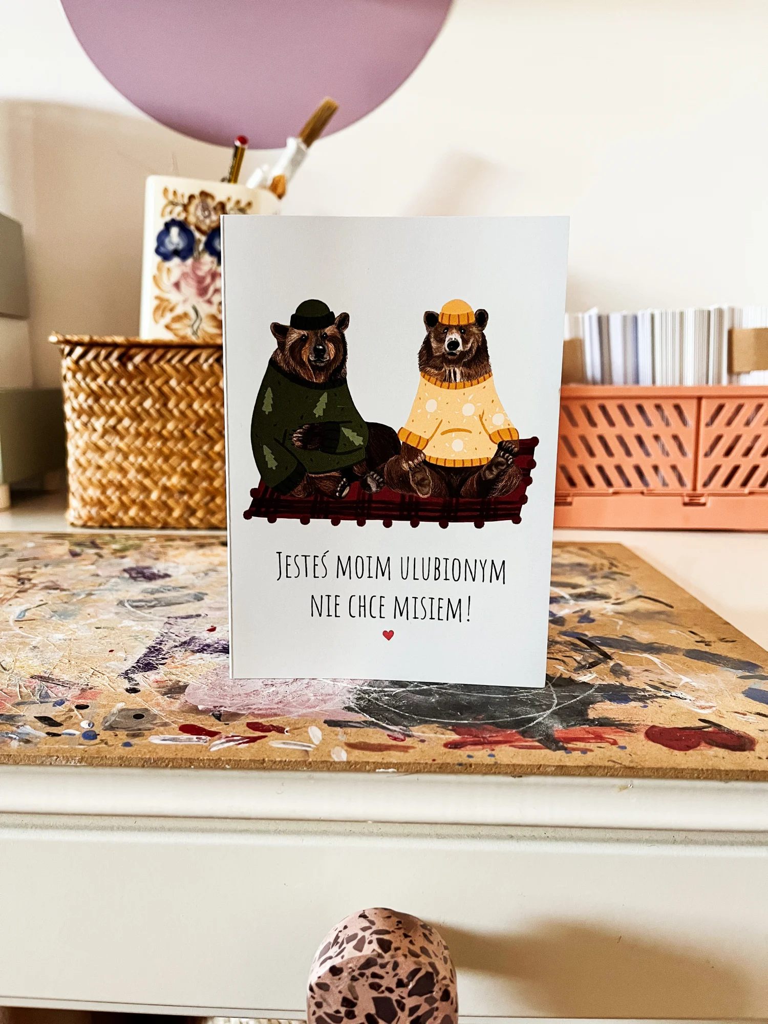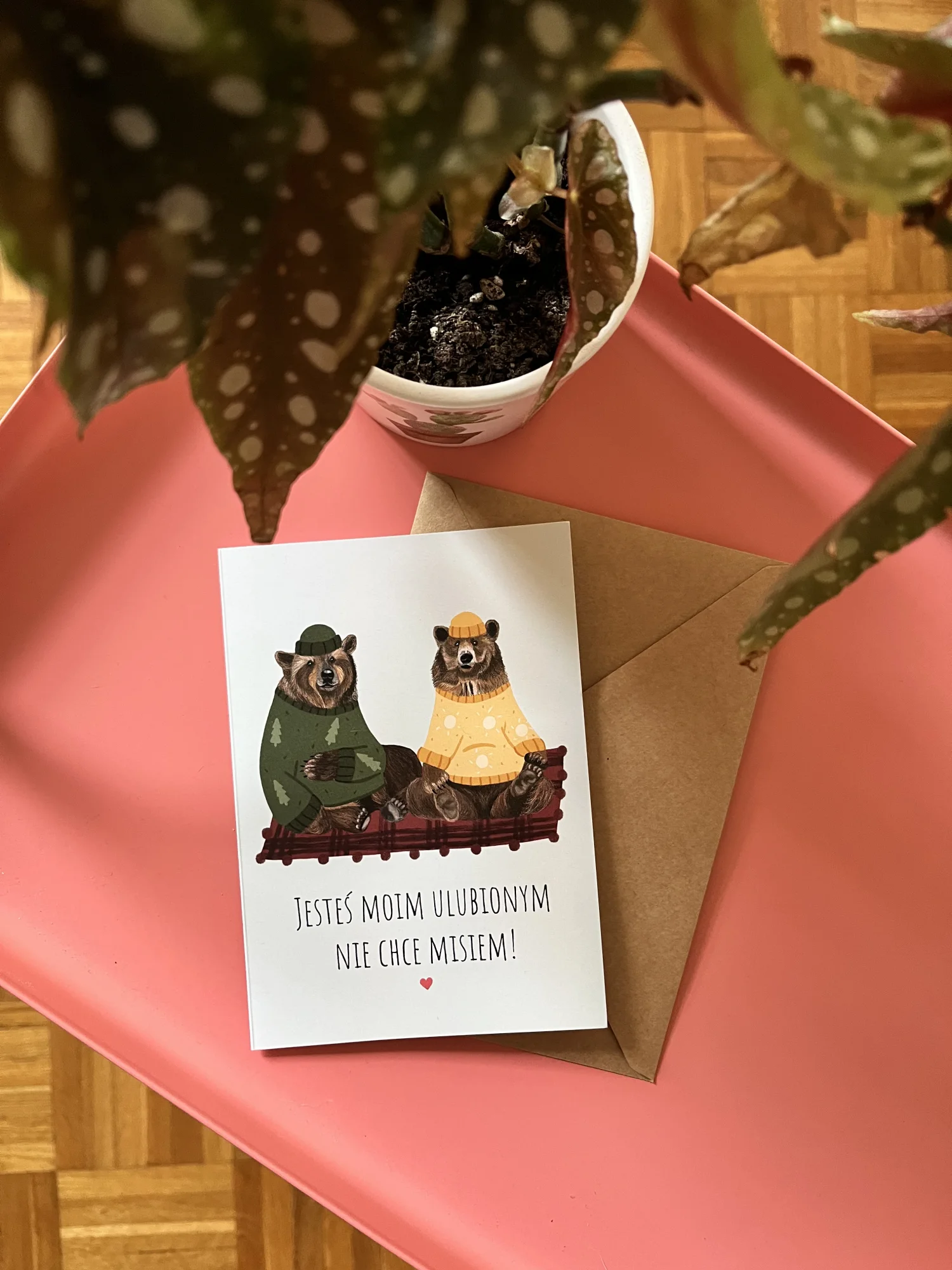 Kartka Okolicznościowa dla każdego " Nie chce misia".