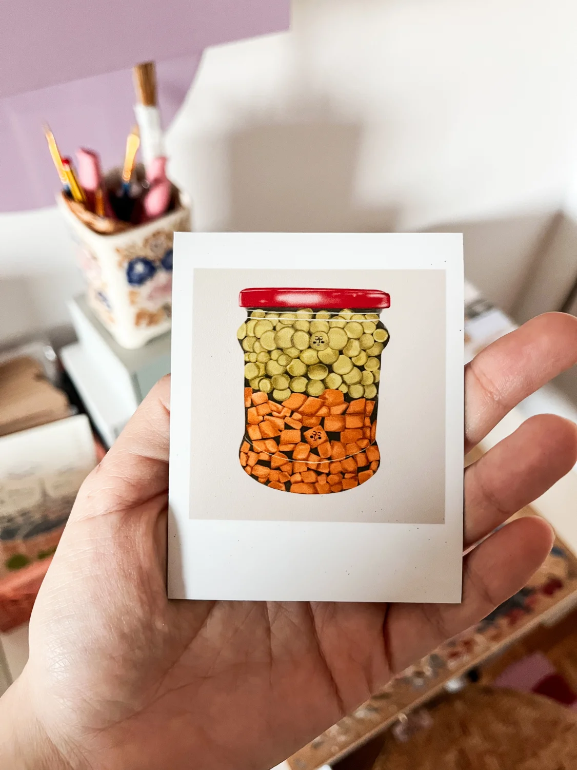 Kto powiedział, że lodówka musi być nudna? Przygotowałam magnes stylizowany na zdjęcie z polaroida. Na nim ilustracja mojego autorstwa!